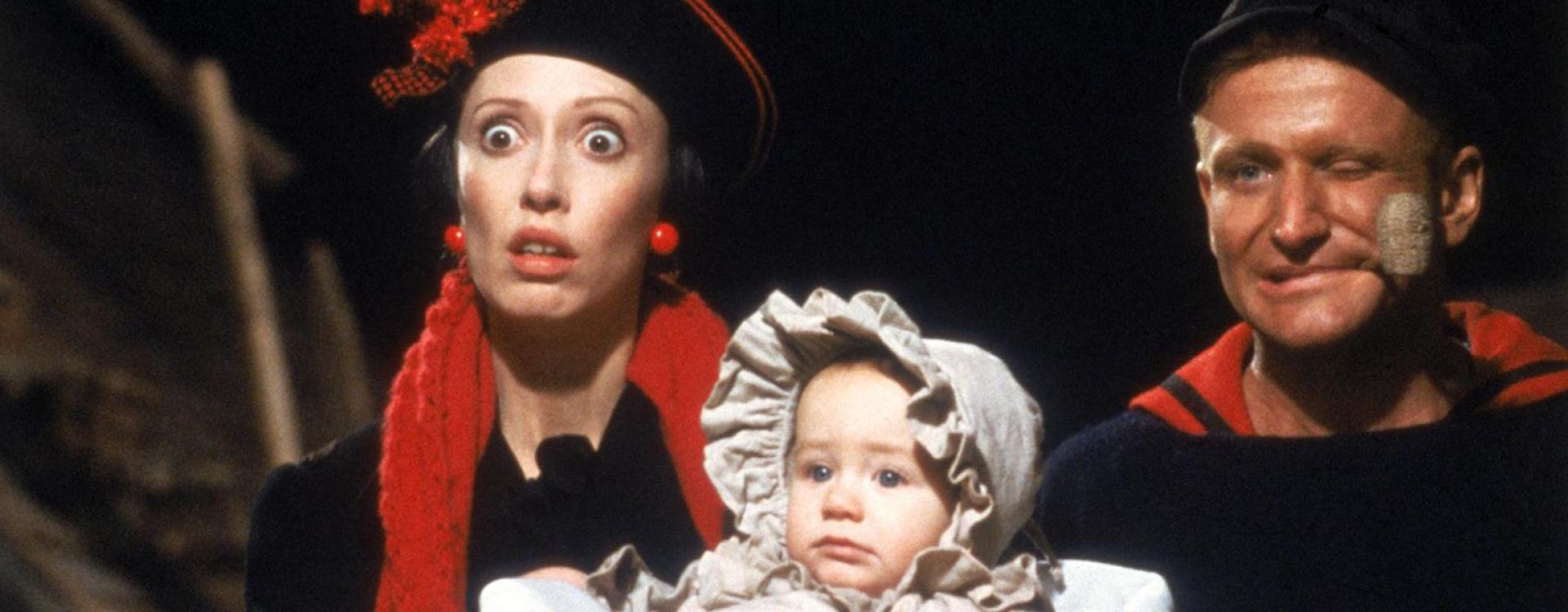 Based on the long-running comic strip created by E.C. Segar (and less on the animated cartoons created by Max Fleischer, which were decidedly different in tone and approach), Popeye follows the sailor man with the mighty arms (played by Robin Williams in his first major film role) as he arrives in the seaside community of Sweethaven in search of his long-lost father. Popeye meets and quickly falls for the slender Olive Oyl (Shelley Duvall, in the role she was born to play), but Olive's hand has already been promised to the hulking Bluto (Paul Smith), of whom Olive can say little except, well, he's large. Eventually, Popeye and Olive are brought together by Swee' Pea (Wesley Ivan Hurt), an adorable foundling, and Popeye finally meets his dad, Poopdeck Pappy (Ray Walston). Director Robert Altman in no way tempered his trademark style for this big-budget family opus, crowding the screen with a variety of characters and allowing his cast to overlap as much dialogue as they want.